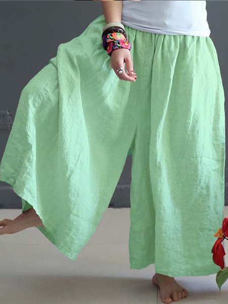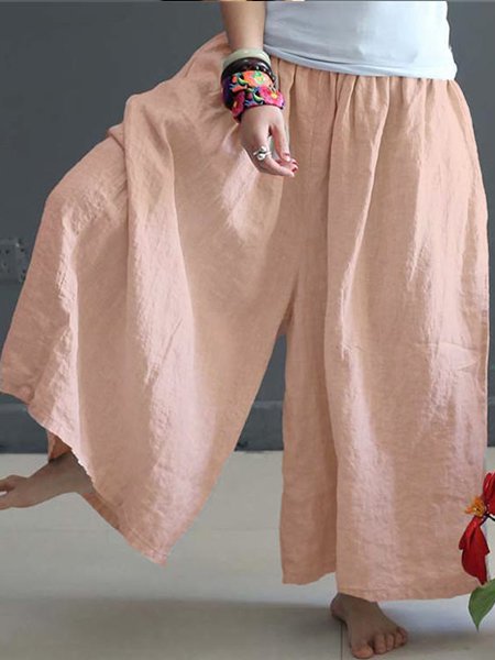 Solid Color Vest Cotton Linen Casual Wide Leg Pants Set