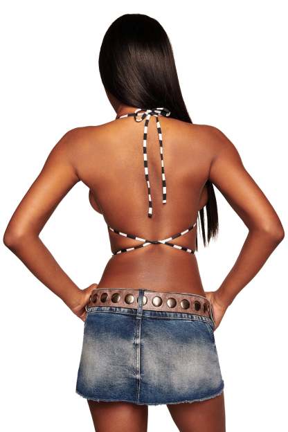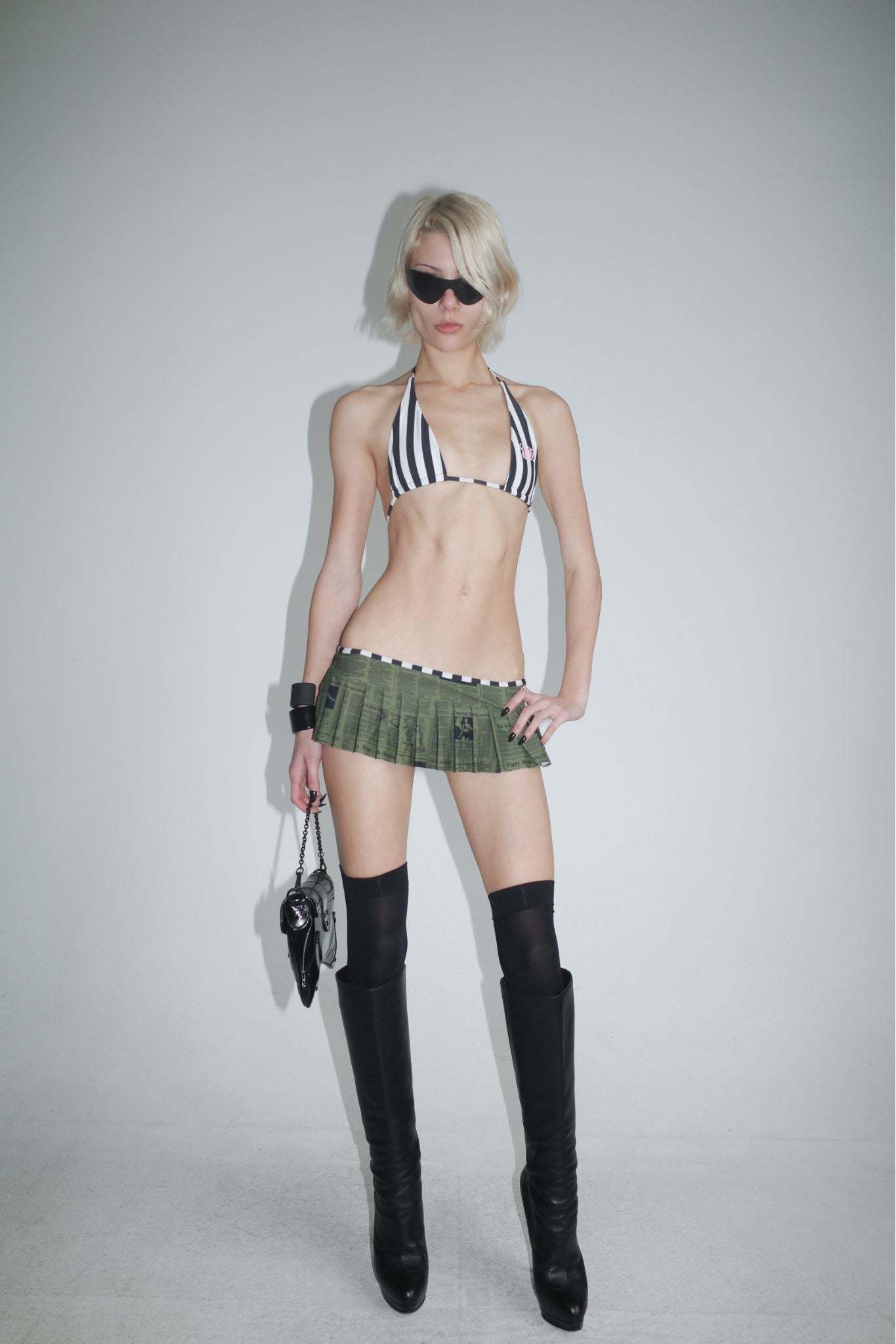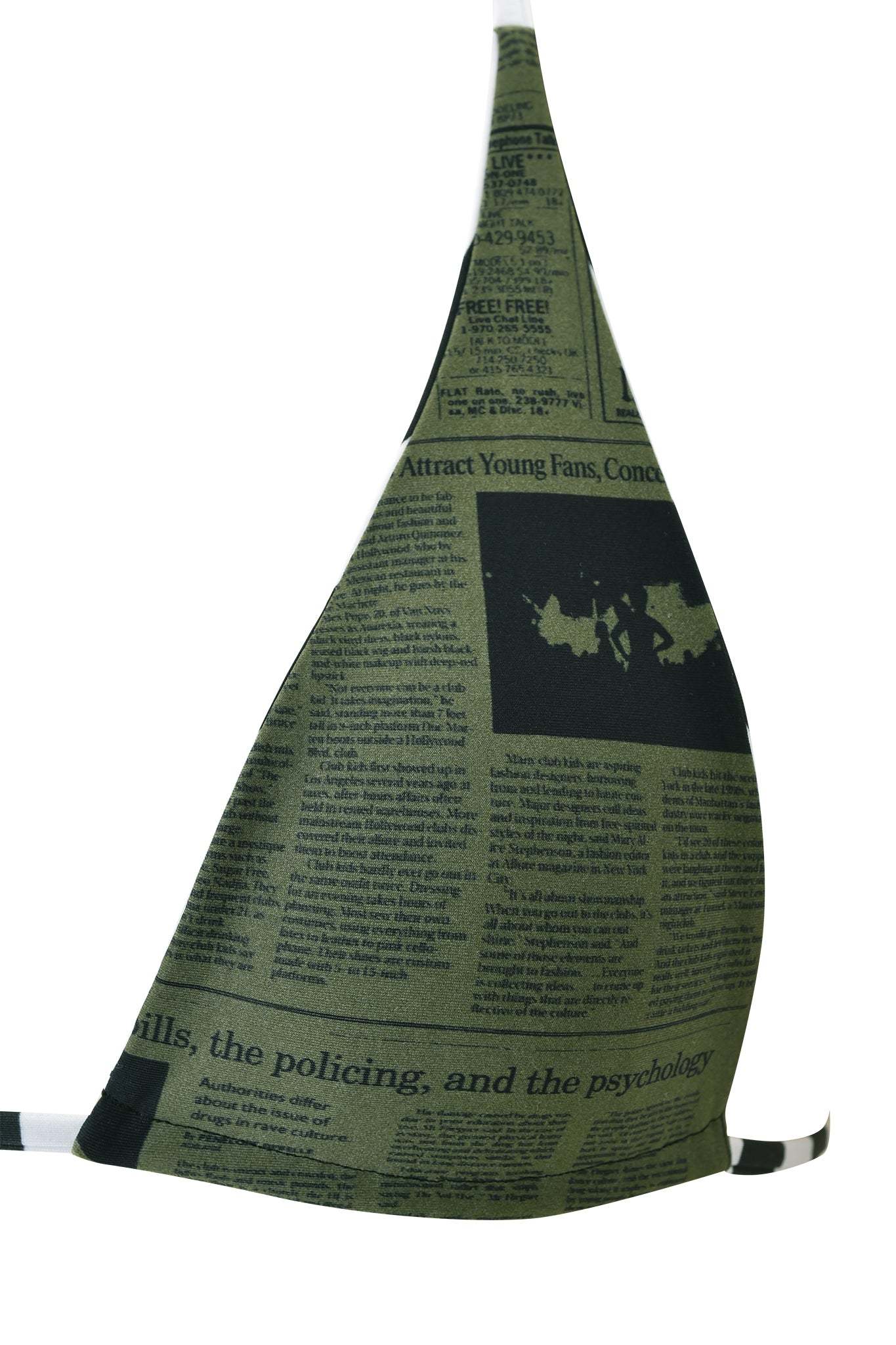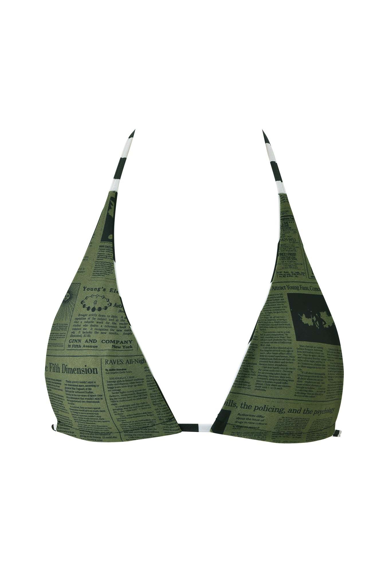 - Reversible bikini triangle top in new Stripe & Newspaper Print - A new custom print designed in-house by our design and graphics team