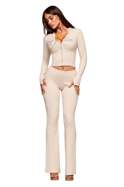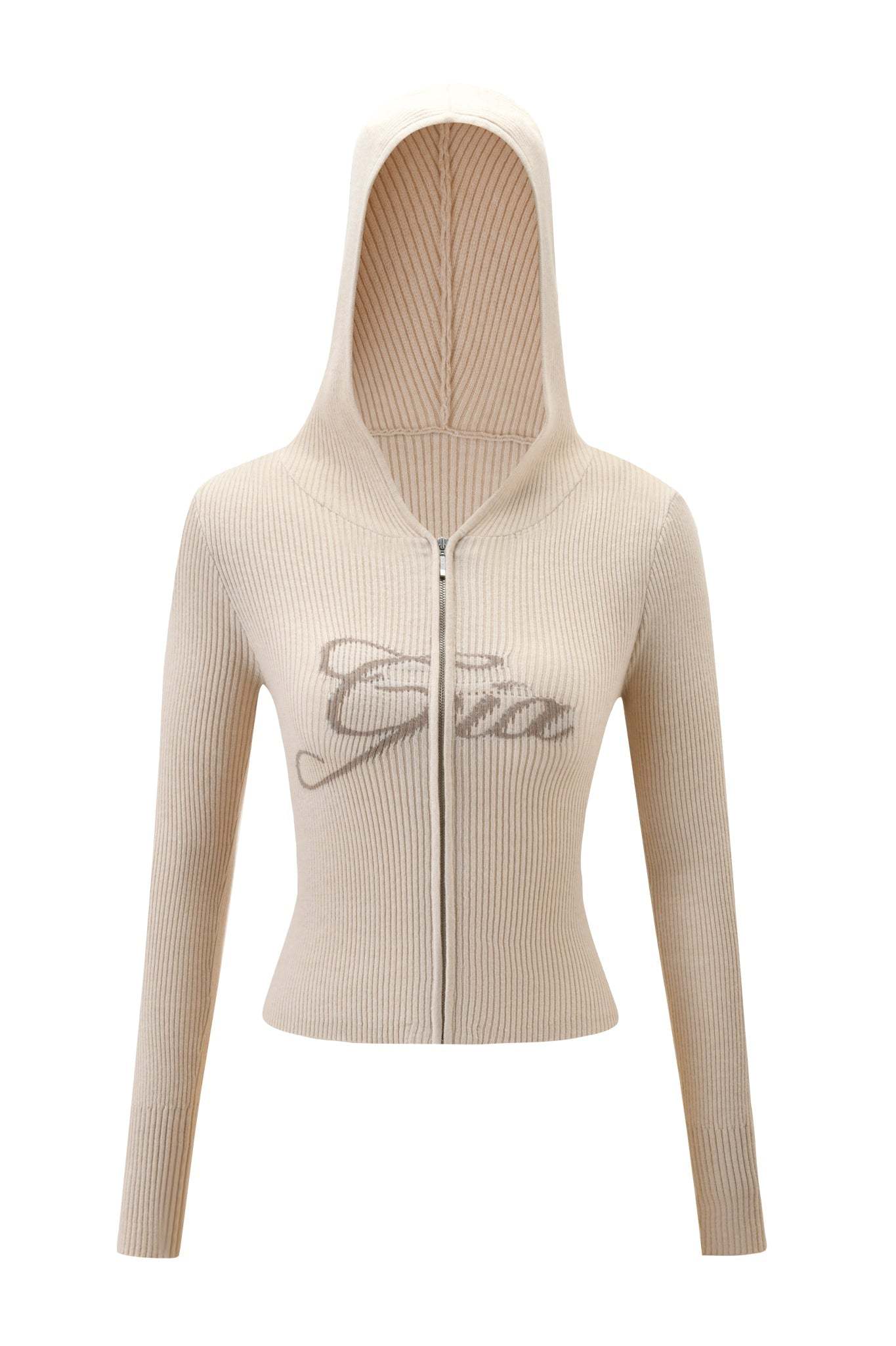 - Cream knit hoodie