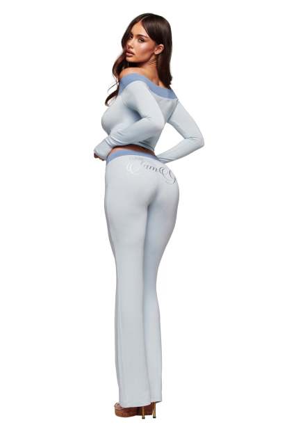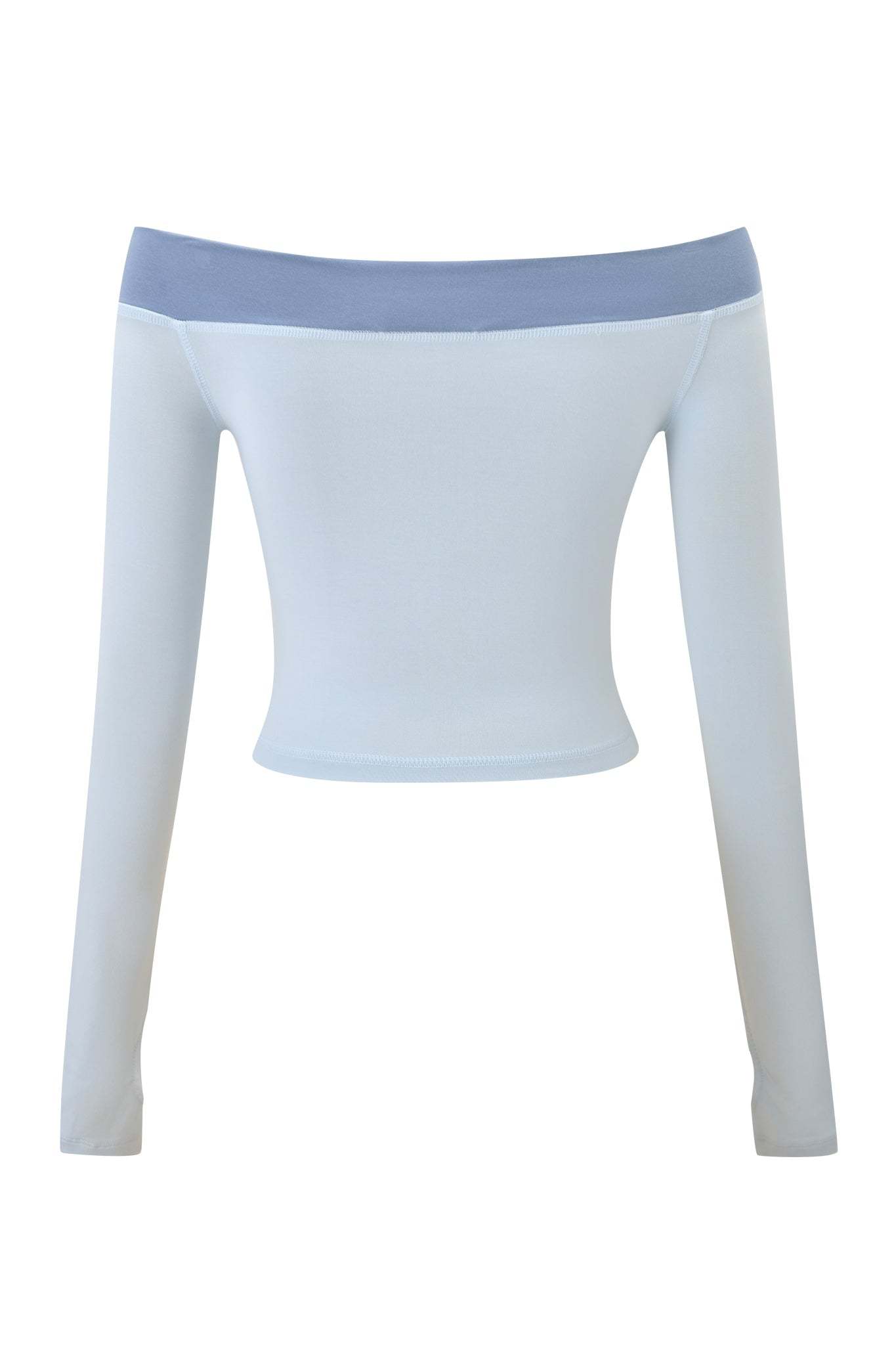 BLARE OFF SHOULDER TOP - TWO TONE POWDER BLUE