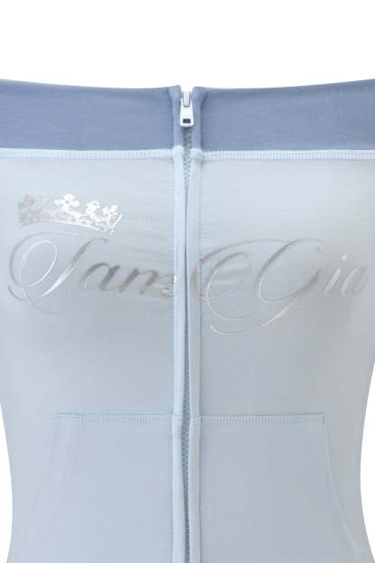 - Two-toned off the shoulder zip up top