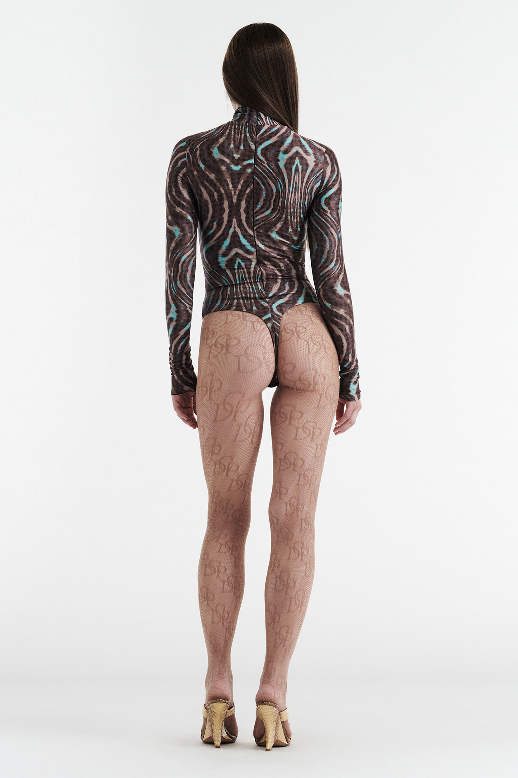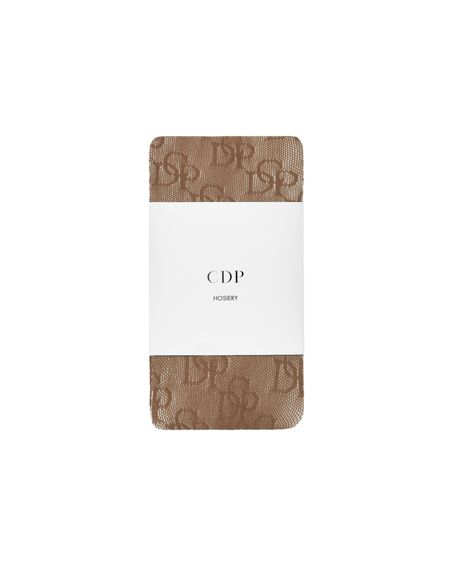The Christine stocking is a high-waisted hosiery design, featuring a custom CDP monogram sheer pattern. Finished with a loop trim at the elasticized waistband, these stockings serve as a versatile base layer for any occasion.