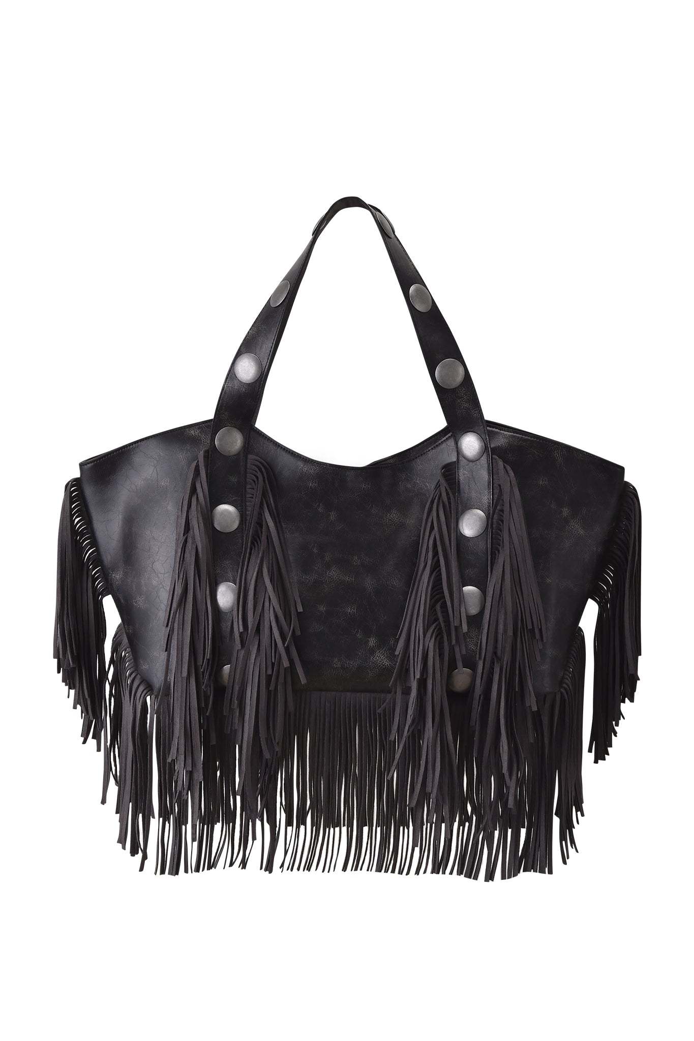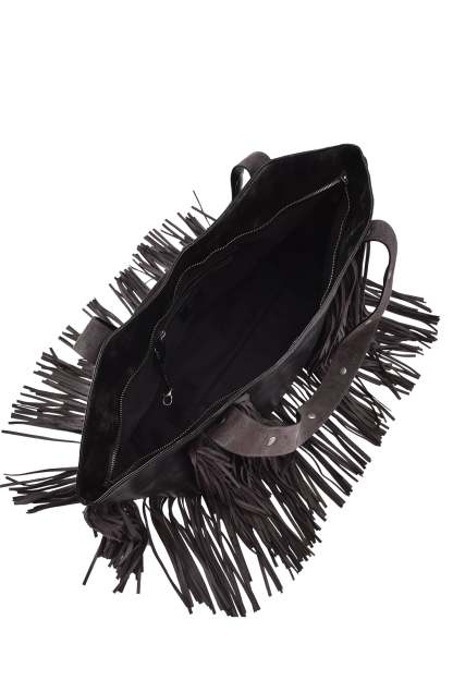 - Featuring PU suede fringe trim
