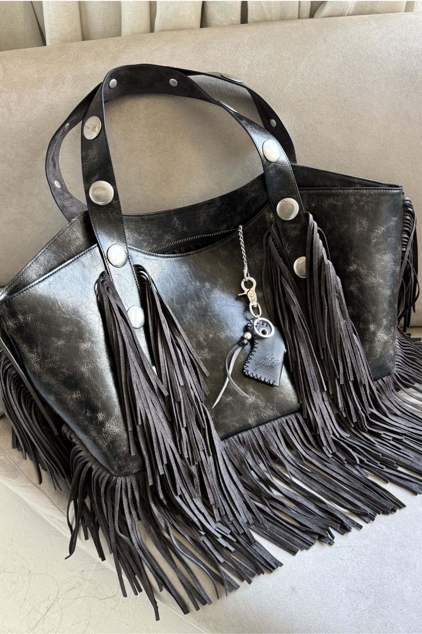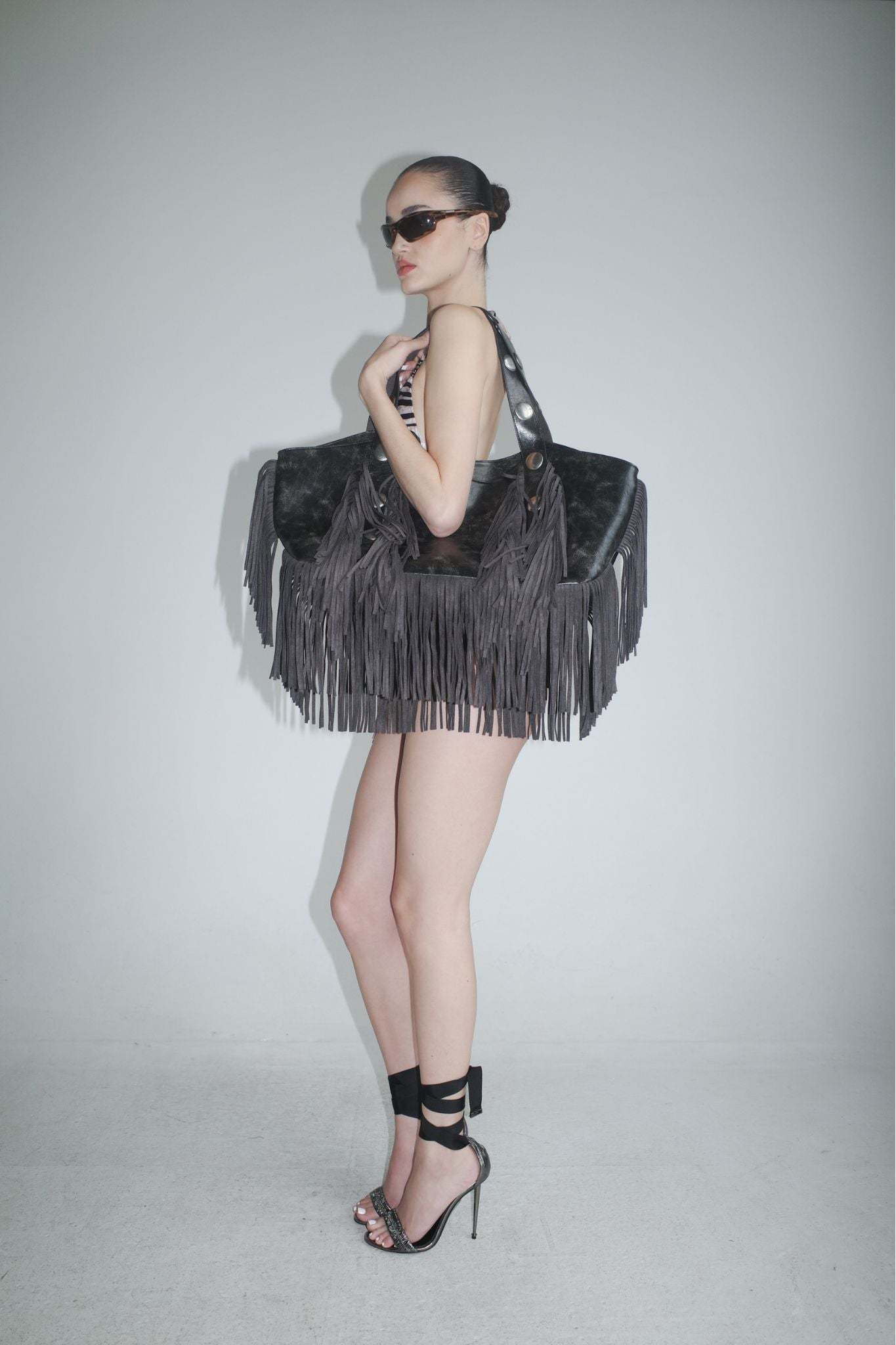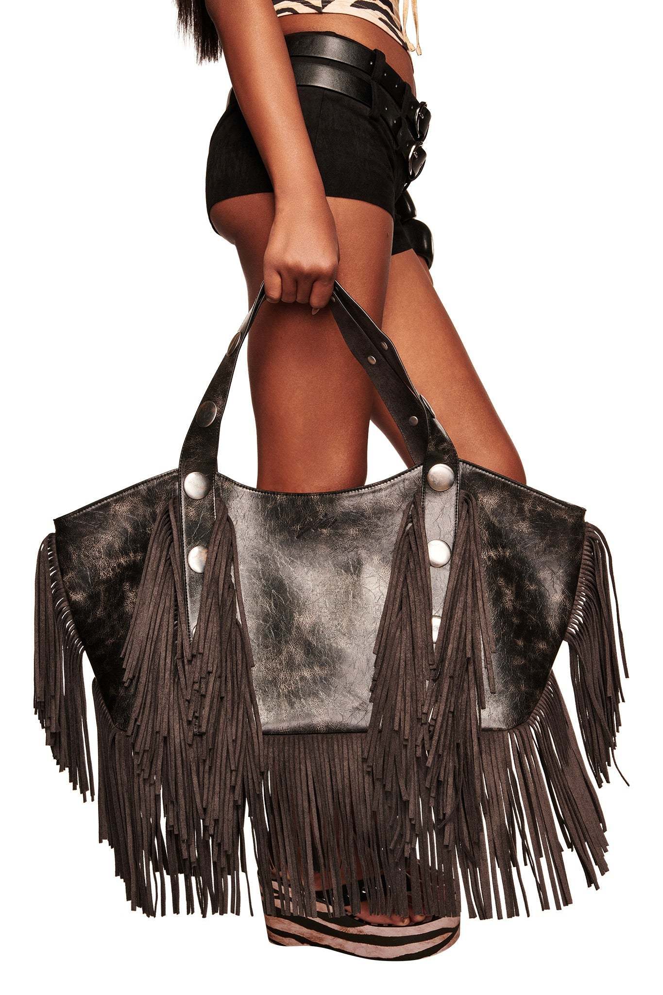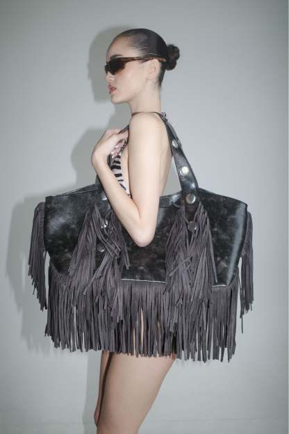 - Chroma Fringe Bag in distressed black