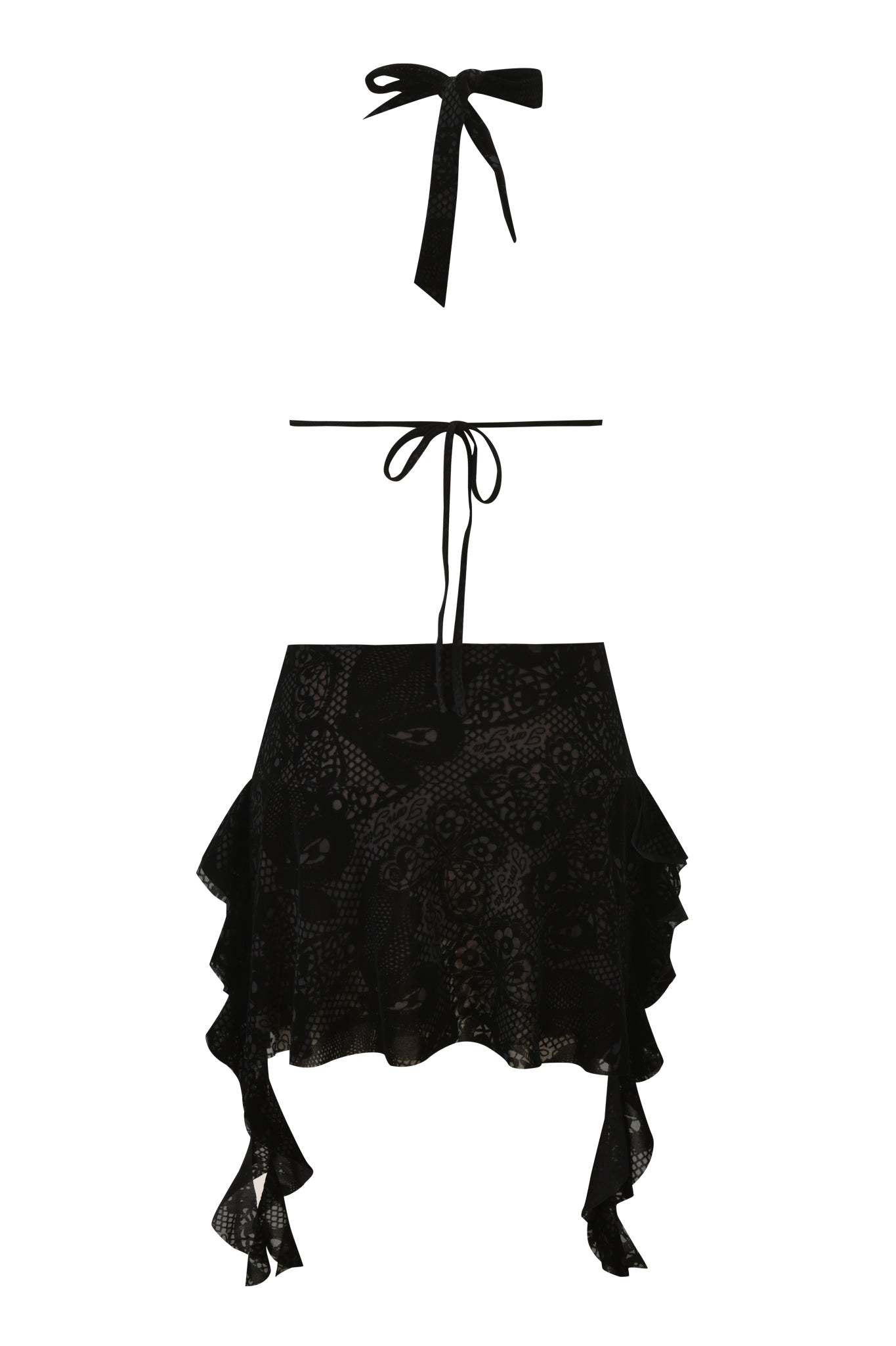 - Halter ties at neck