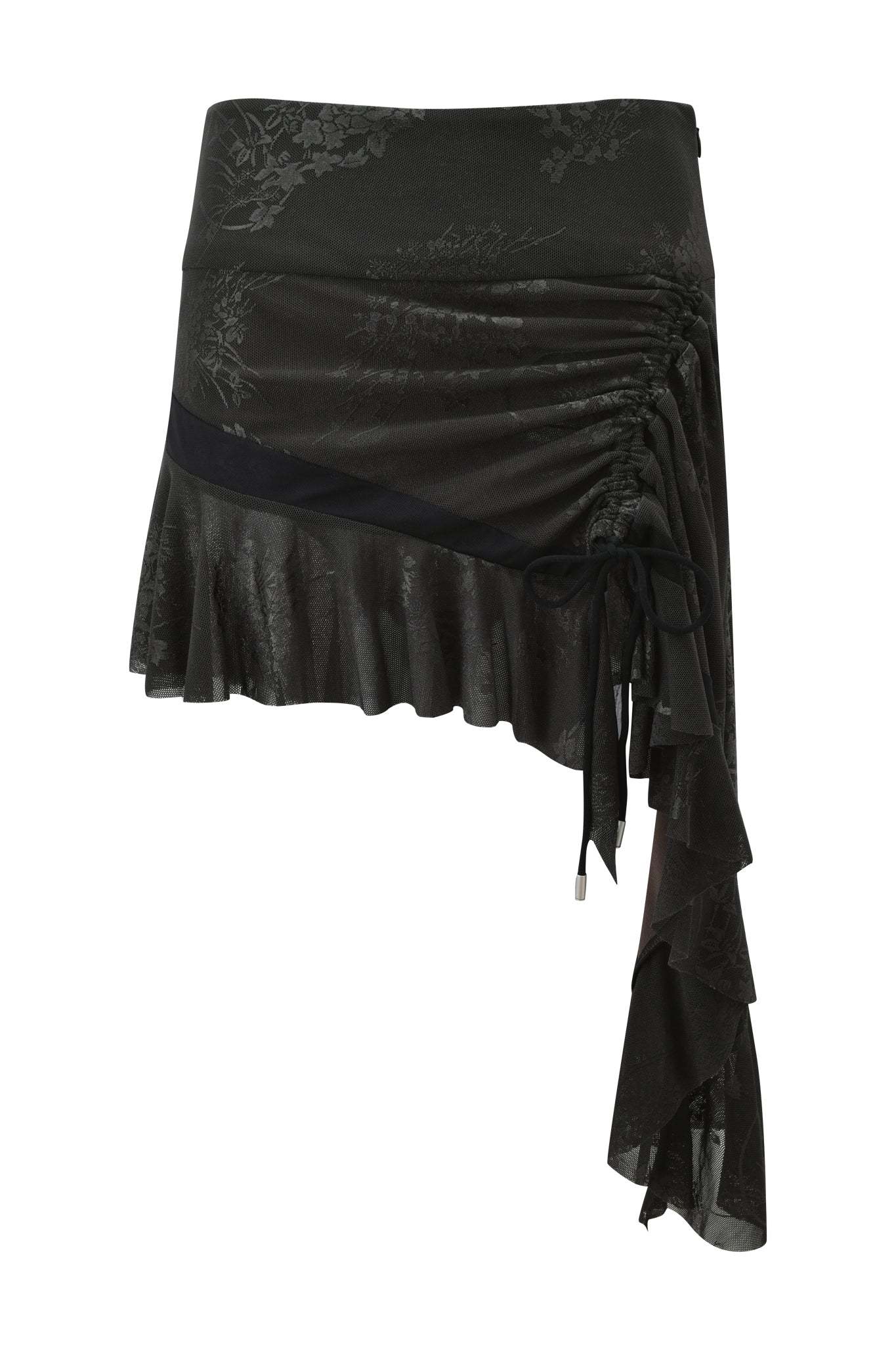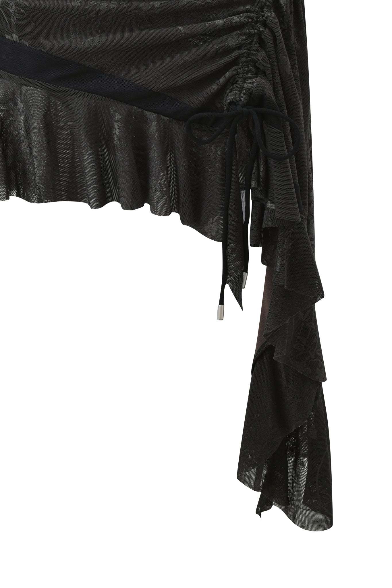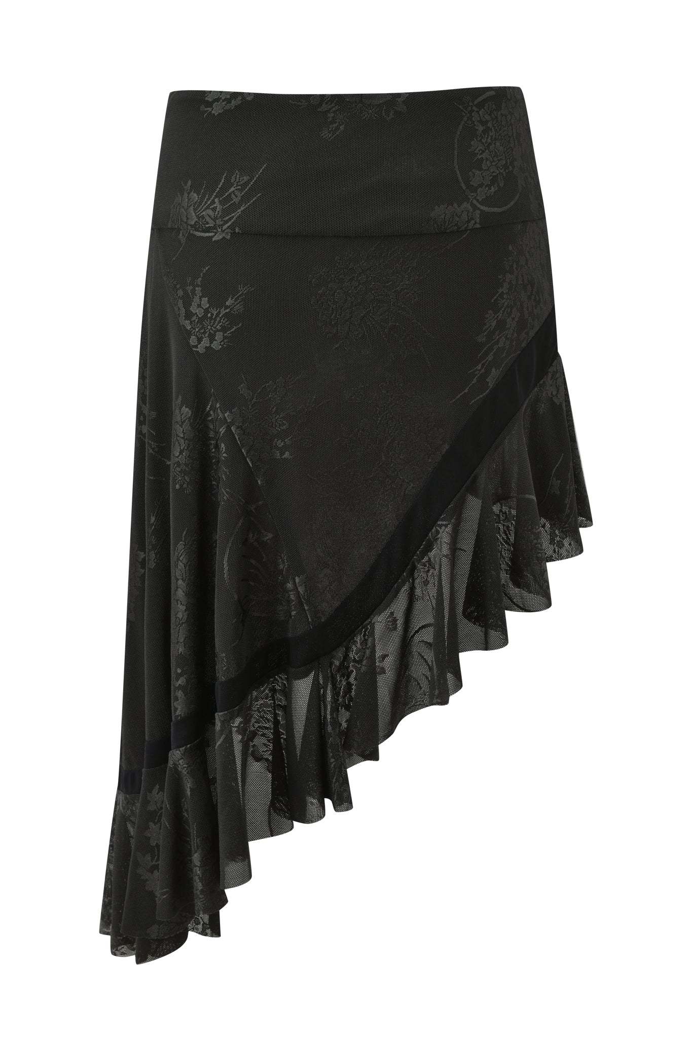 - Asymmetrical black mesh skirt
