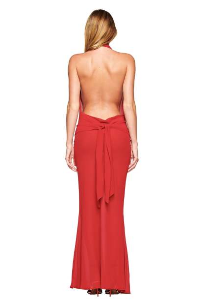 - Backless design with an adjustable tie detail at the back of the skirt