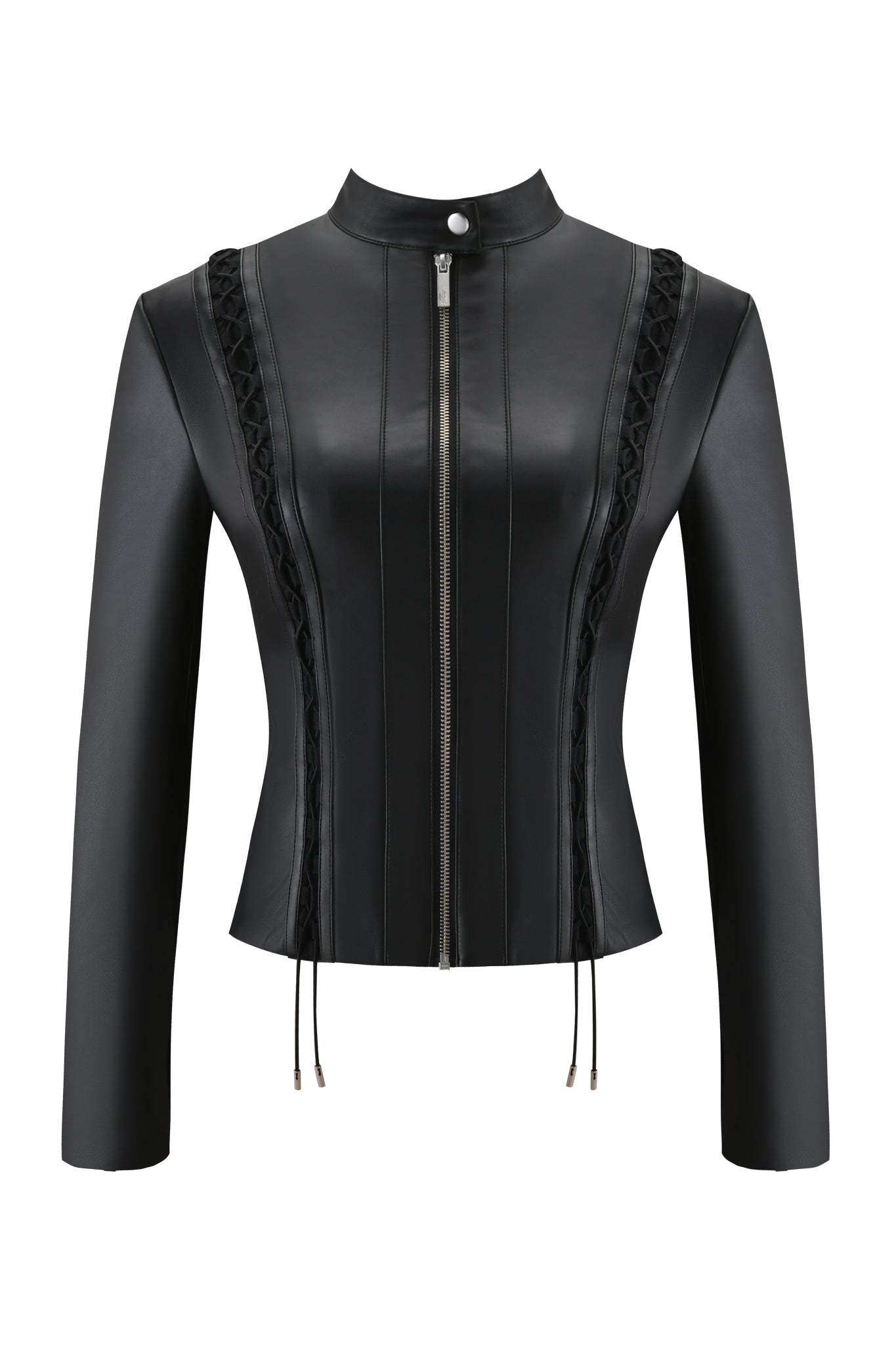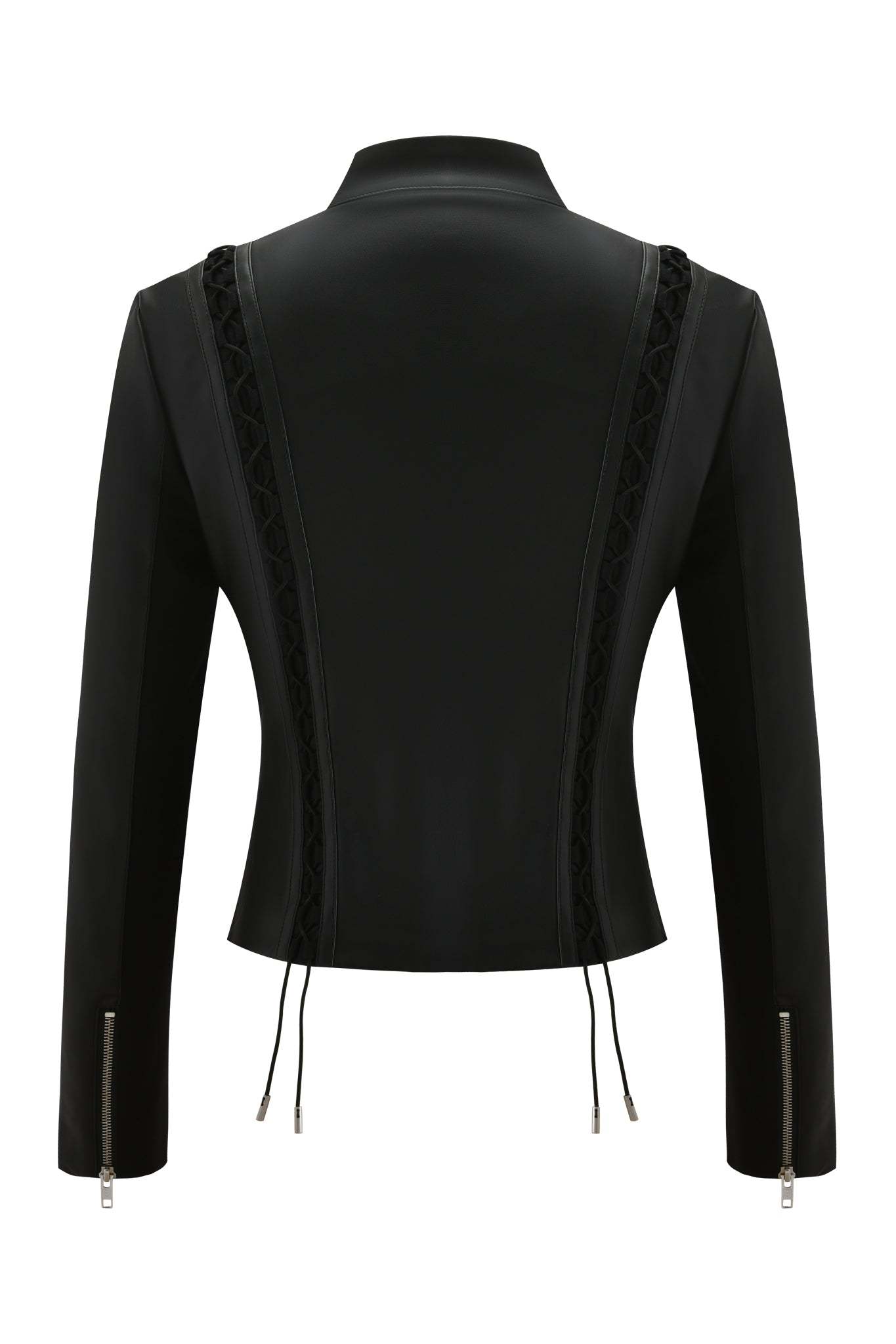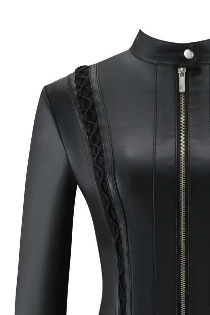 - Black PU moto-style jacket
