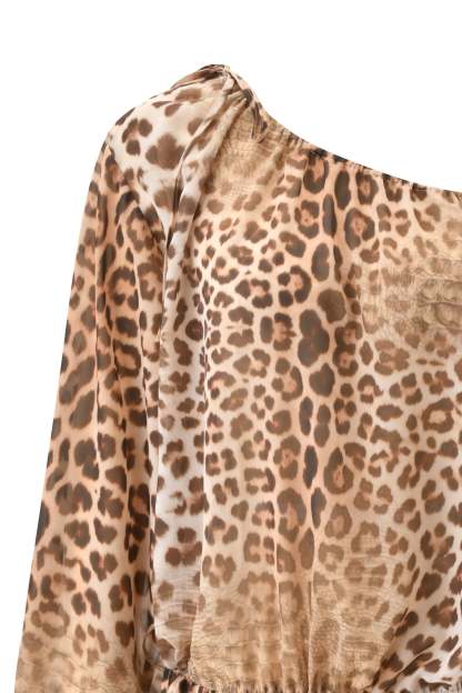- Off-shoulder drop waist mini dress in a new custom animal print designed in-house by our design and graphics team