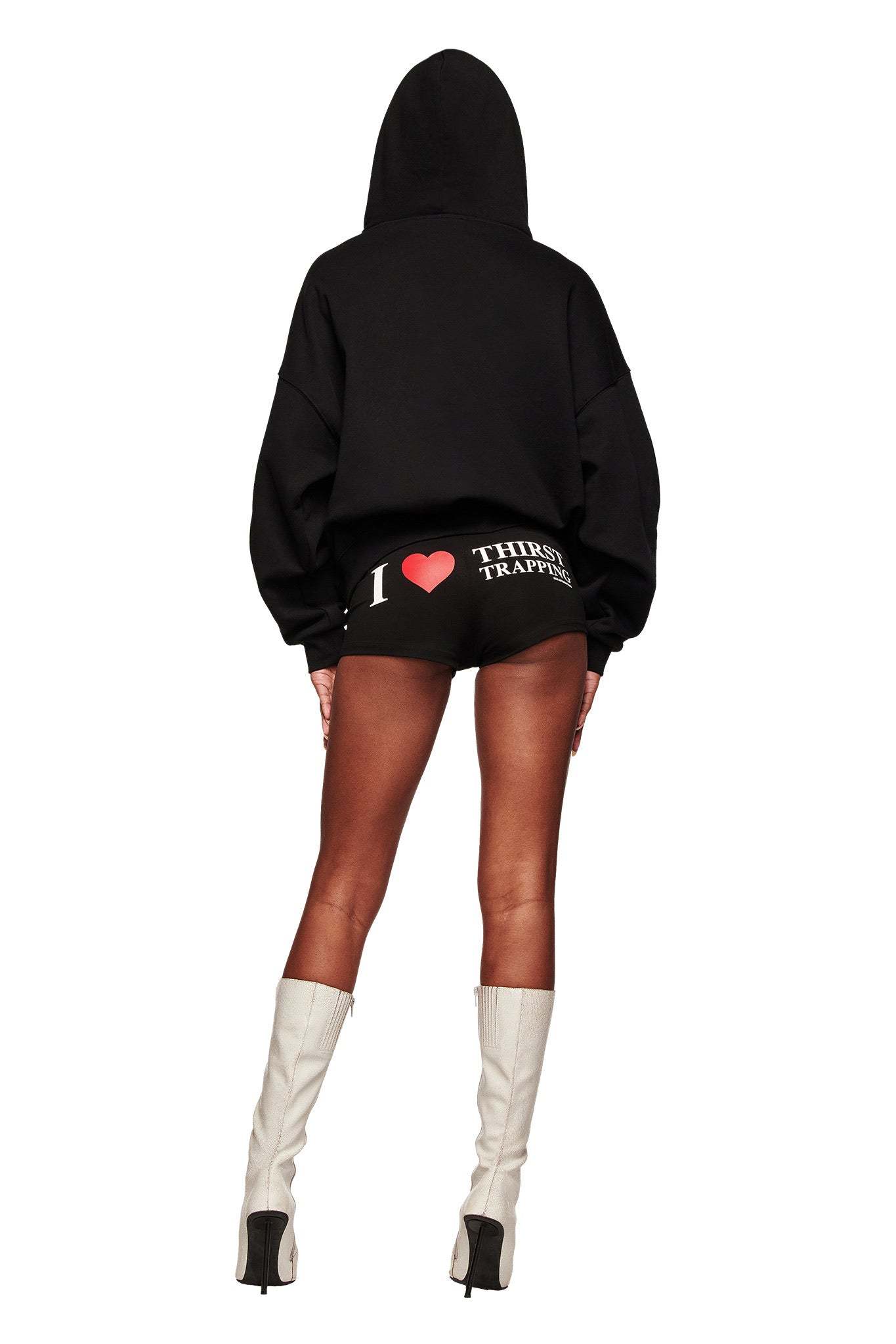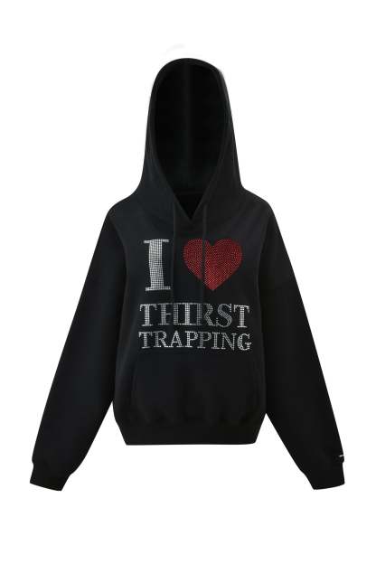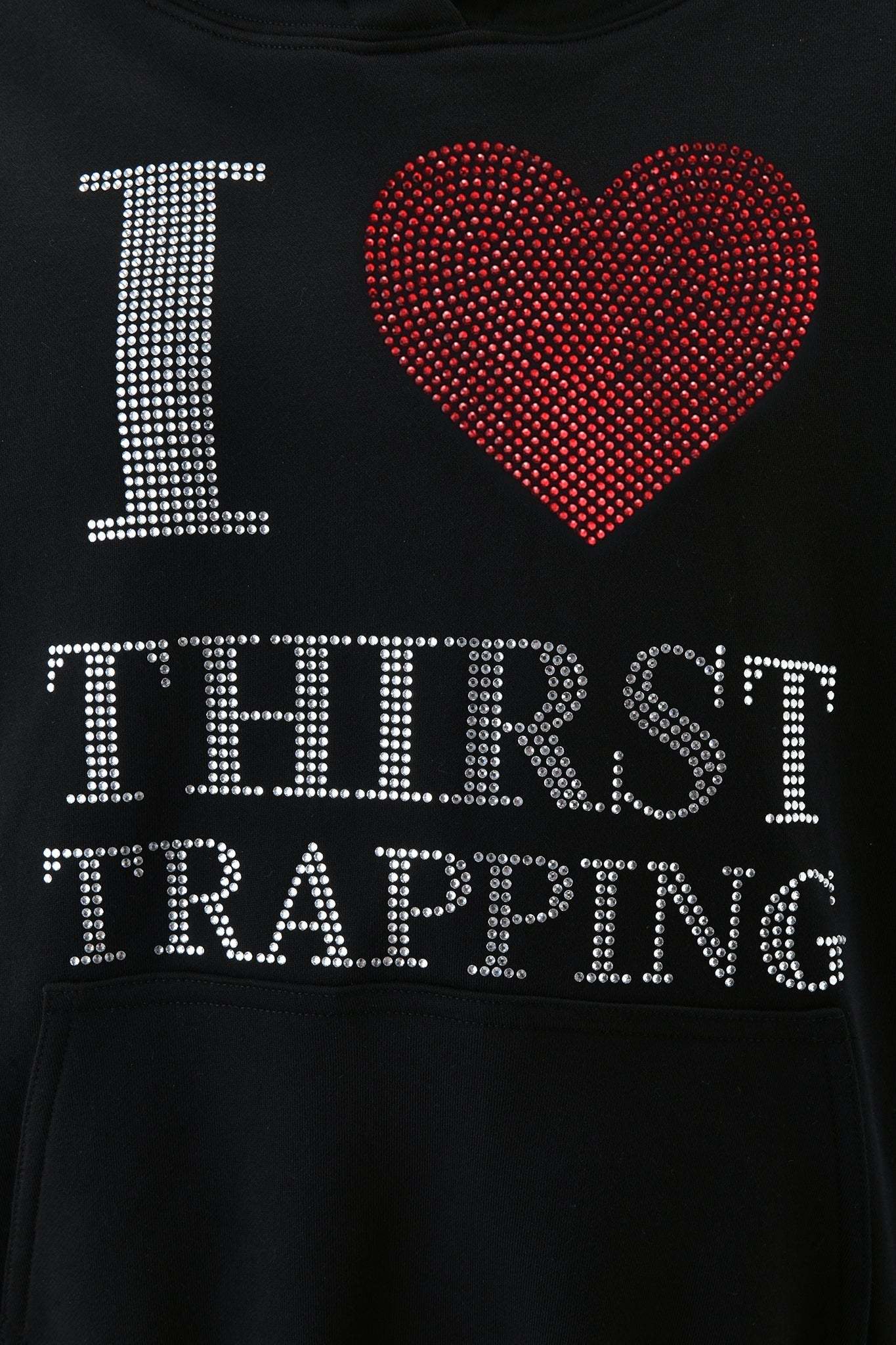- Custom 'I <3 THIRST TRAPPING' print across the chest created using appliqué diamantés