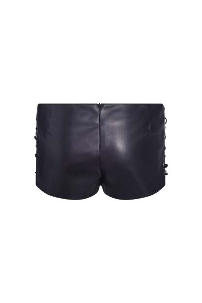 - Decorative lace up along centre front and sides with black satin ribbon and metal eyelets