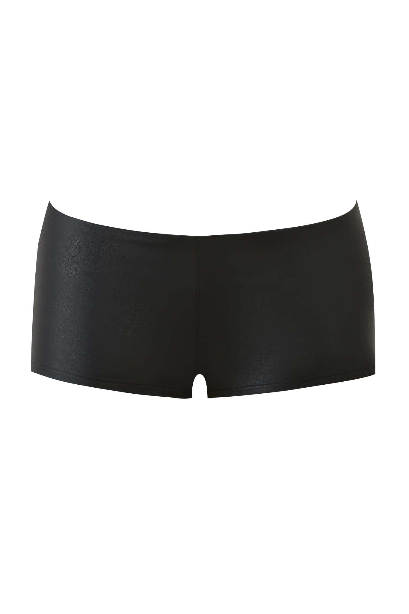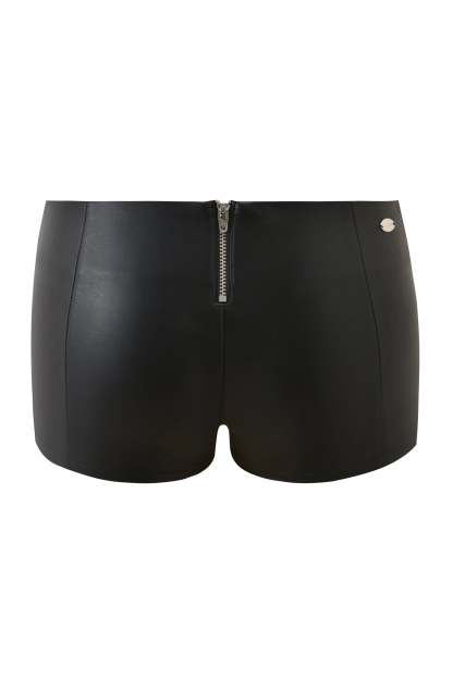 - Sleek black PU hot short