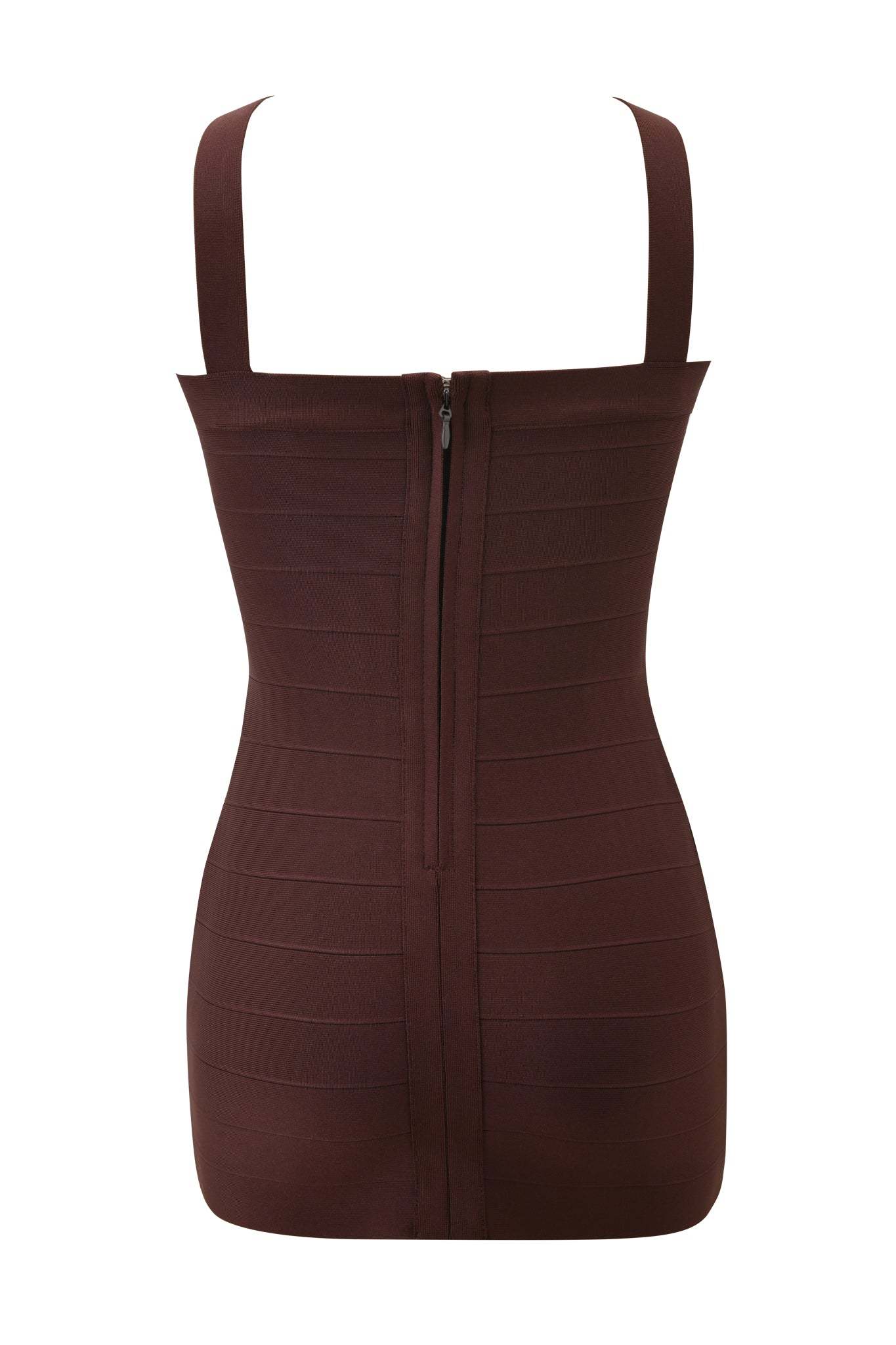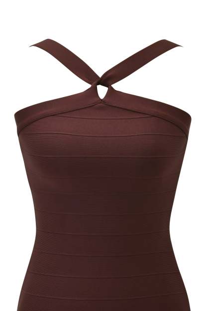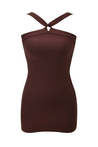 - Dark brown bandage style bodycon mini dress