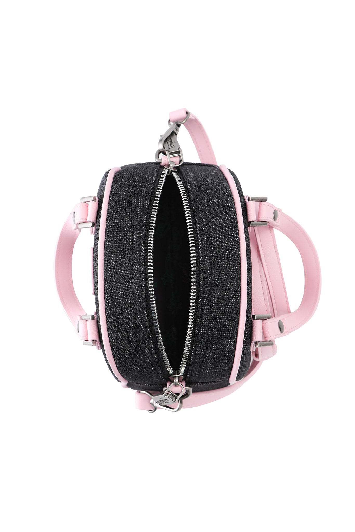 - Pink PU top handle and crossbody straps