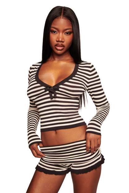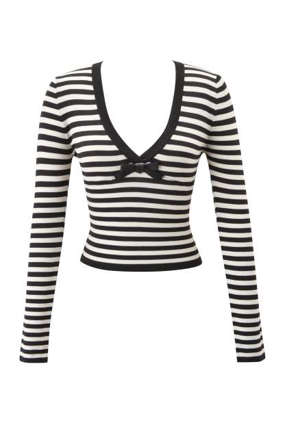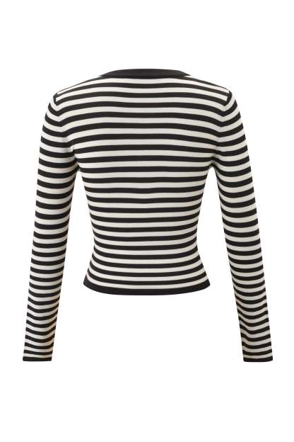 - Long sleeve top in black and cream stripe